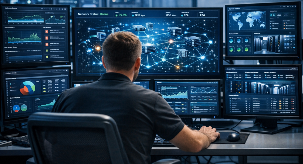 Kernkompetenzen – Die Basis dafür stellen hier Microsoft- oder Linux-Betriebssysteme zusammen mit den nötigen Sicherheitseinrichtungen und Internetanbindungen.